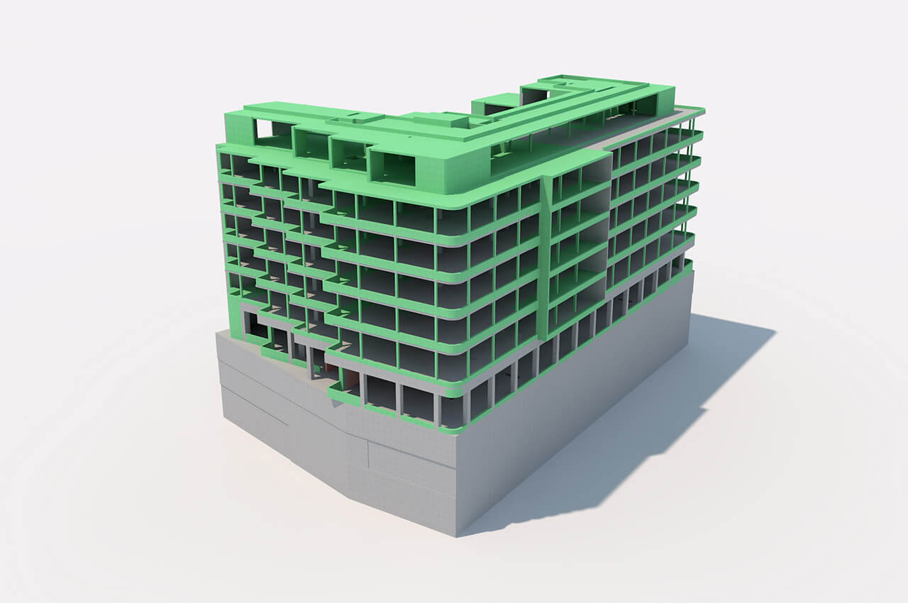 - Komplettes 3D-Modell vom Bestand, Abbruch und Neubau