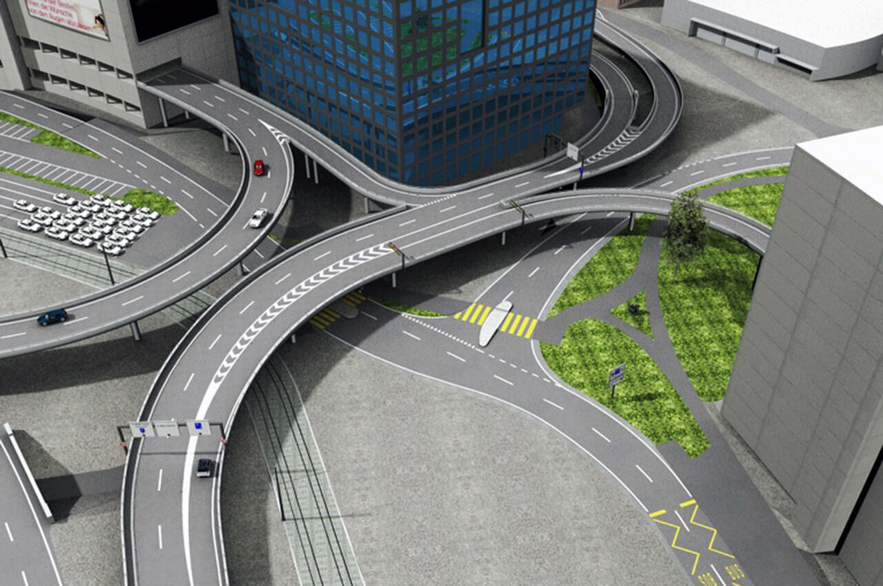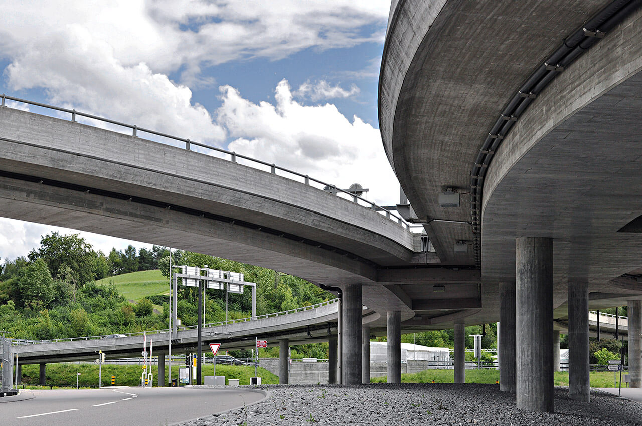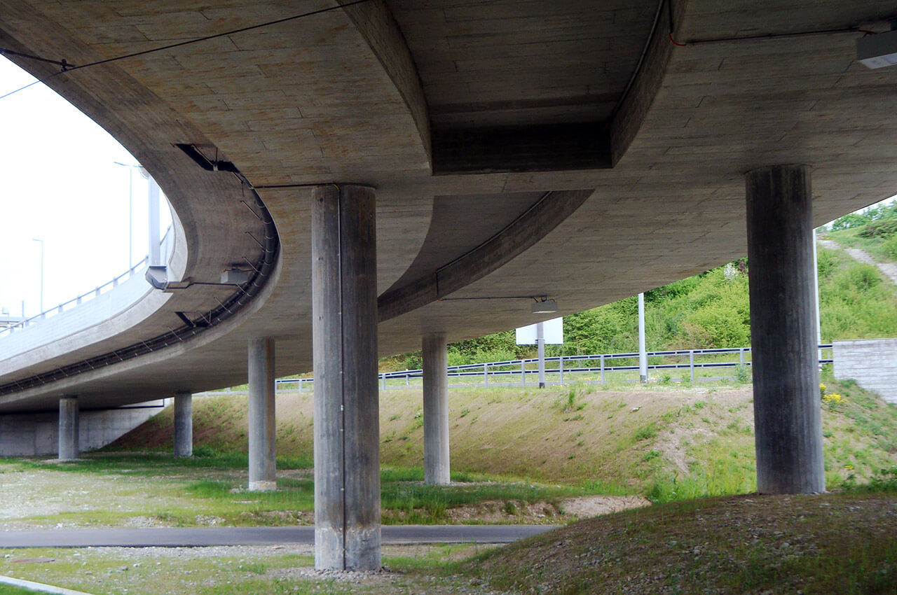 - Strassenbrücke mit diversen Ästen als Zu- und Wegfahrtbauwerk zu den Parkhäusern und Terminals