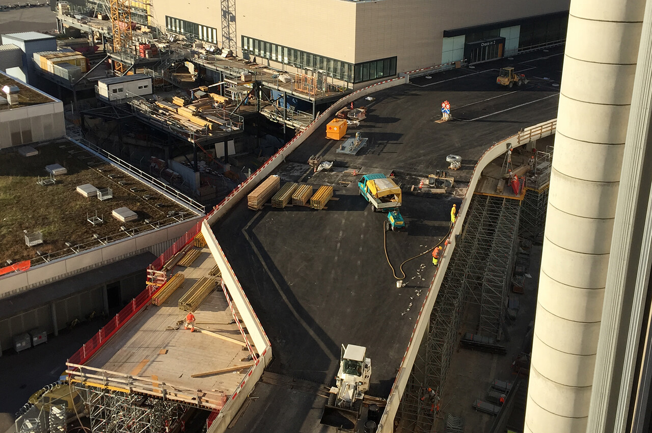 - Verlängerung der bestehenden Vorfahrtsbrücke im Bereich des Terminals 2 mit einer neuen Brücke von rund 75 Metern Länge